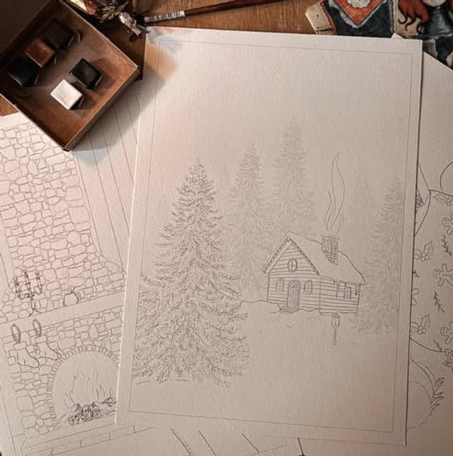 Manon vous a préparer 3 planches de coloriage, imprimées par mes soins sur du papier aquarelle 300g et je vous ai préparer un set de 5 aquarelles spéciale Noël!